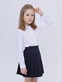 Блузка с длинным рукавом и отложным воротничком с закругленными краями . Ткань с потайным рисунком ромб. Застежка на 6 пуговиц. Съемный бант разнообразит образ.